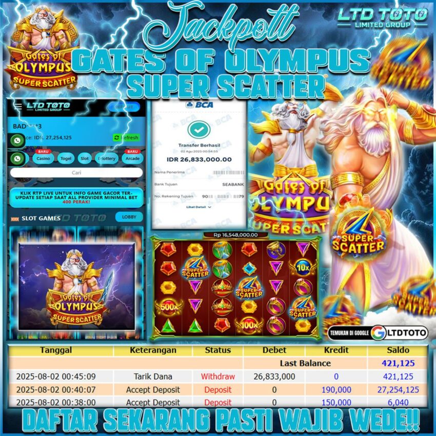 LTDTOTO JACKPOT OLYMPUS SUPER SCATTER RP 26.833.000 SABTU 02 AUGUST 2025