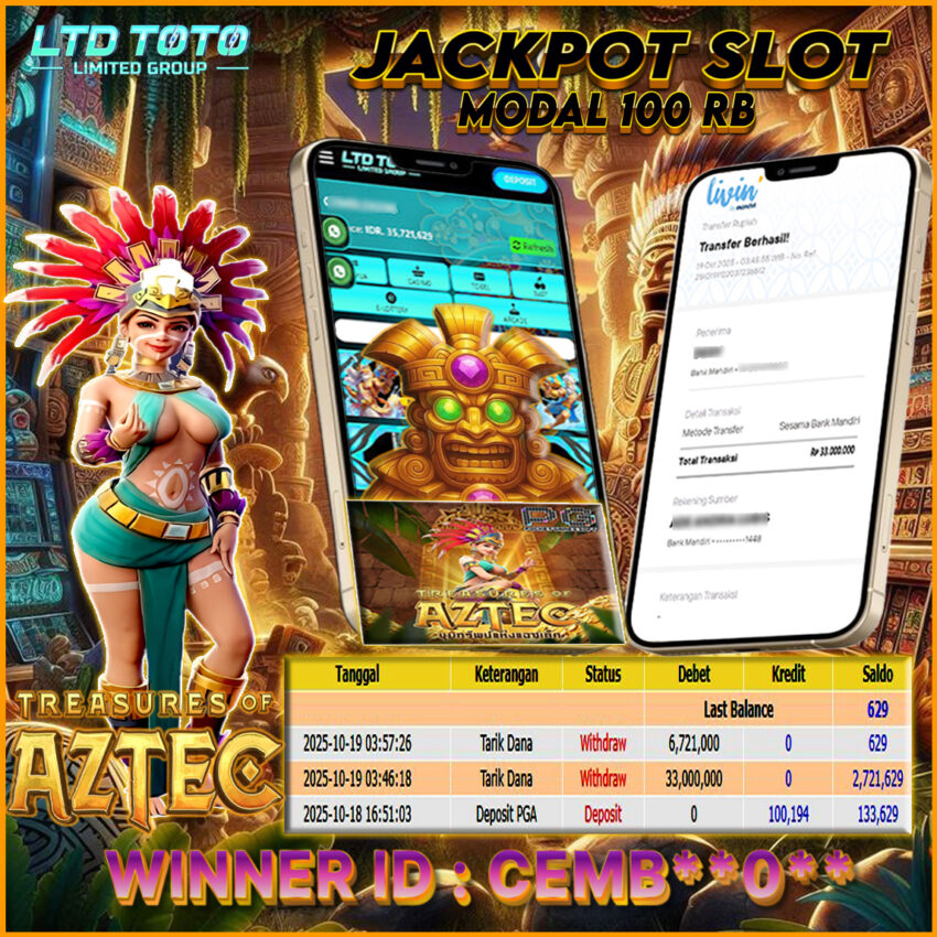 LTDTOTO JACKPOT TREASURES OF AZTEC RP 33.000.000 MINGGU 19 OKTOBER 2025